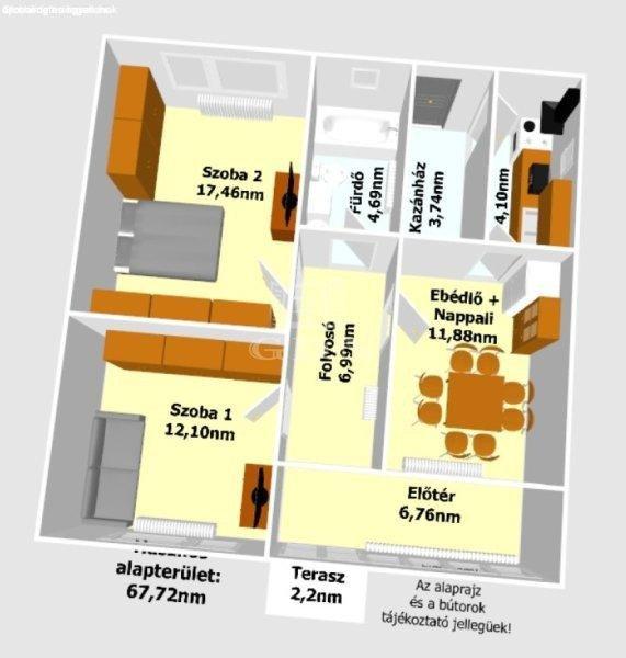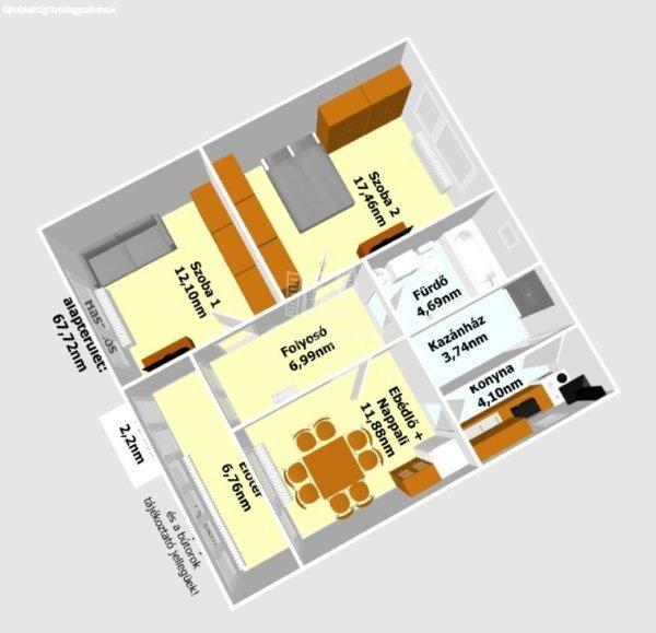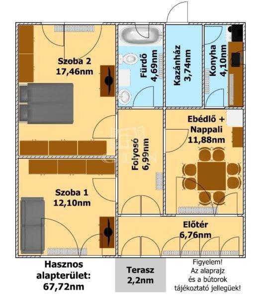 hasznos alapterülete 67,72nm melyben található:- 2 szoba,- fürdőszoba,- konyha,-