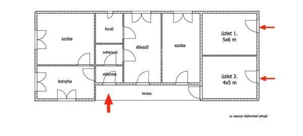 részen jelenleg 2 külön bejaratú üzlethelyiség található, melyeknek közös