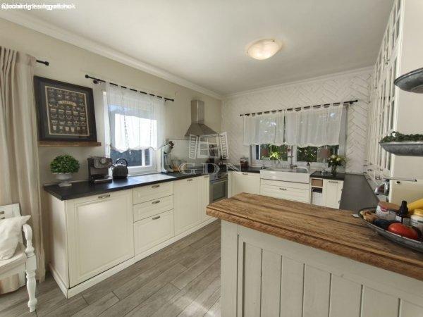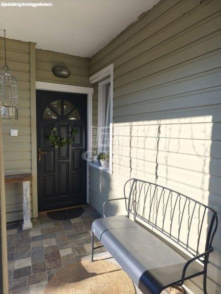 alapterülete nettó 95 nm,- téglaépítésű, szigetelt, homlokzata fa dekor