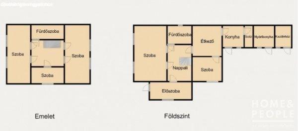 telek- 5(+2kialakítható) szoba, étkező, konyha, 2 fürdőszoba, előszoba,