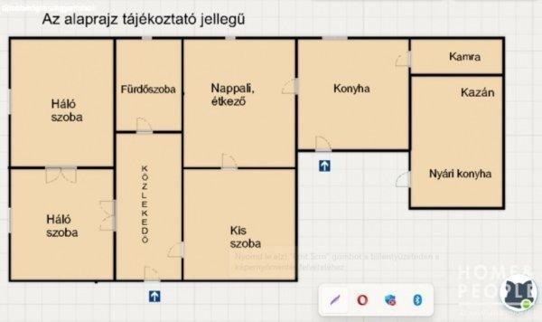 Telek: 1.200nm? Elosztása:Nagy ház: 2 nagy és 1 kisebb szoba, közlekedő, konyha,