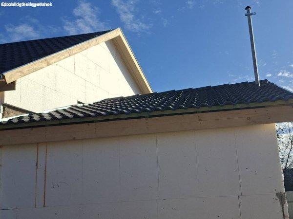 teljesen új tetőszerkezet, hőtükrös párazáró fóliával, új betoncseréppel
