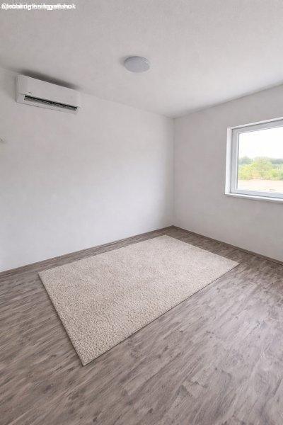 ablakok/ bejárati ajtó. A lakótér burkolatai minőségi, modern, letisztult