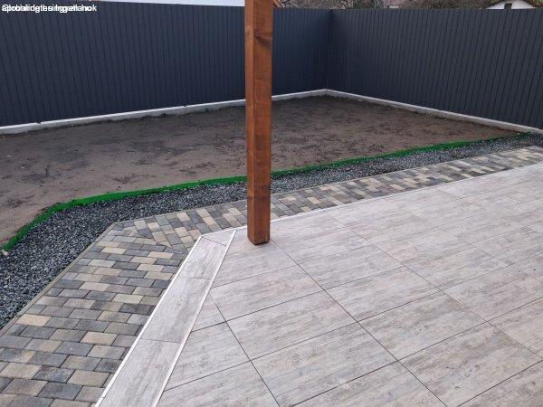 térkövezés, teraszburkolás és teraszfedés valósult meg. A belső felúíjtás is