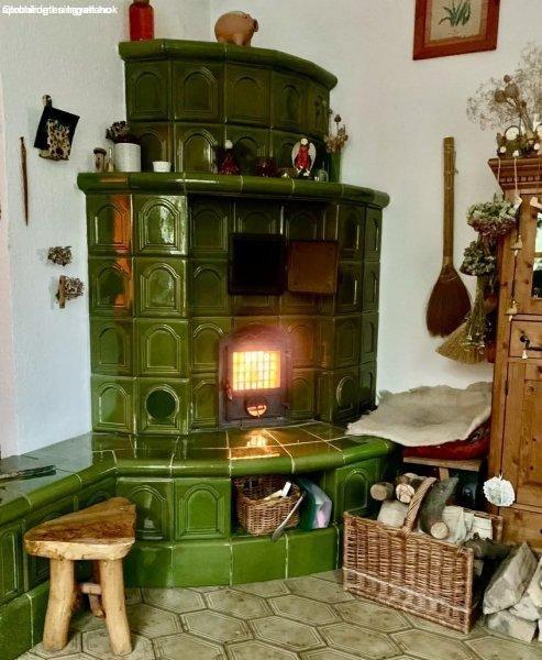 földszinti, 120 m2-es, 3 szoba, nappalis, egyedi-gáz cirkó, cserépkályha és