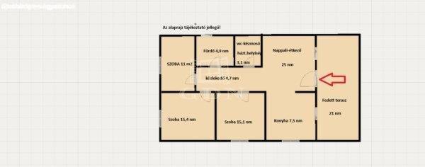 elválasztott 7,4 nm-es konyha, 3 szoba (11 nm,15,1 nm, 15,4 nm), egy 4,9 nm-es