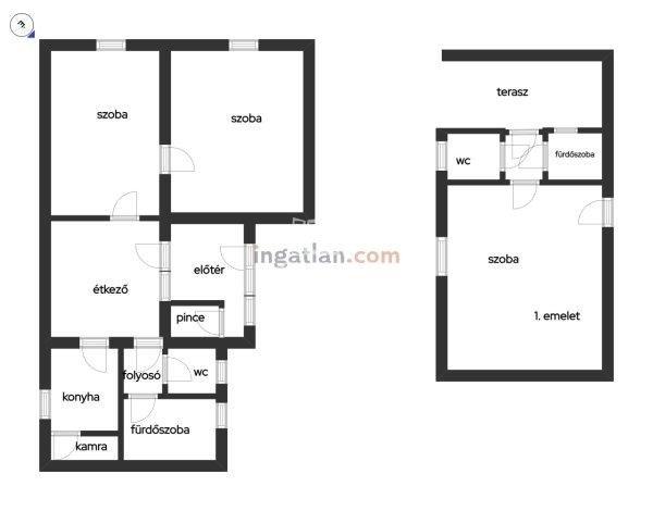 nagyméretű, utcai szoba-főzőfülke-spájz-fürdőszoba-külön mosdóAz emeleten