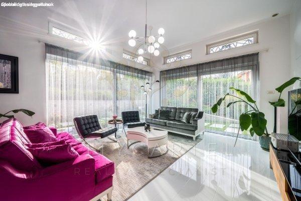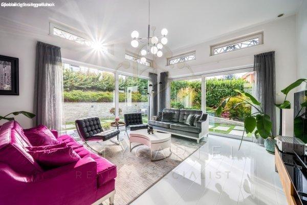 zöldövezeti panorámával. A lakótérben 4+1 szoba, 2 fürdőszoba, valamint egy