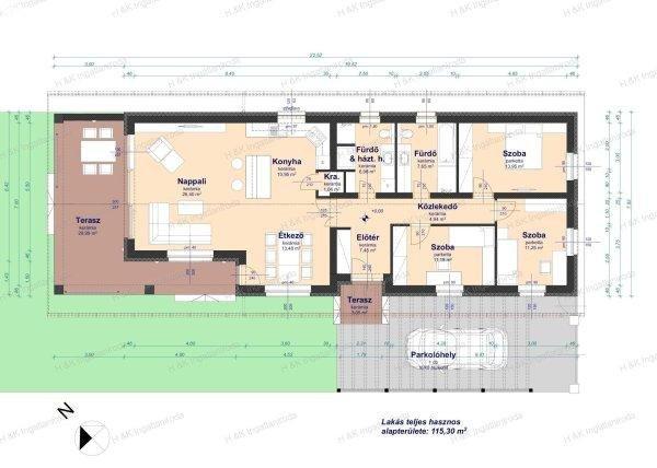 terasz, amerikai-konyhás nappali + 3 szobás, dupla-komfortos családi ház