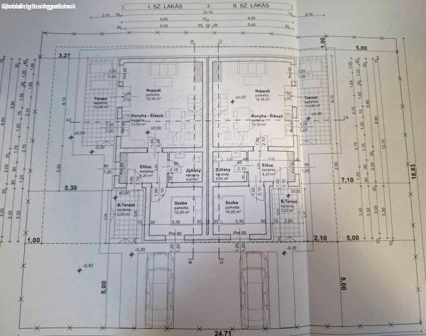 szám.- 4x6 méter térkövezett kocsibeálló.- Az ikerház másik felétől teljesen