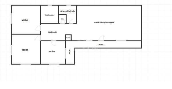 alapterületű.Amerikai konyhás nappali, közlekedő, 3 tágas hálószoba, fürdőszoba,