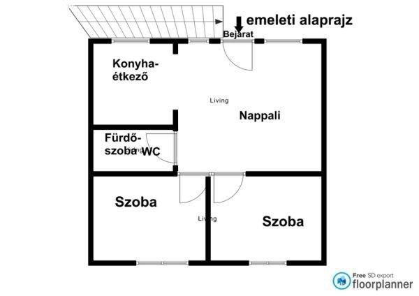 önállóan használható. A földszint alapterülete 110 m˛, míg az emelet 94 m˛,