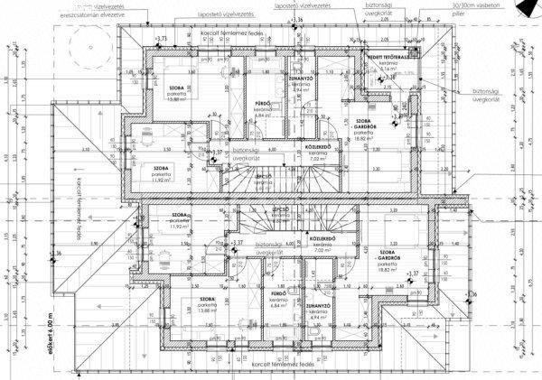 belső elrendezés praktikus és jól szeparált.Ikerházfél: 191 m˛ lakótér Földszint