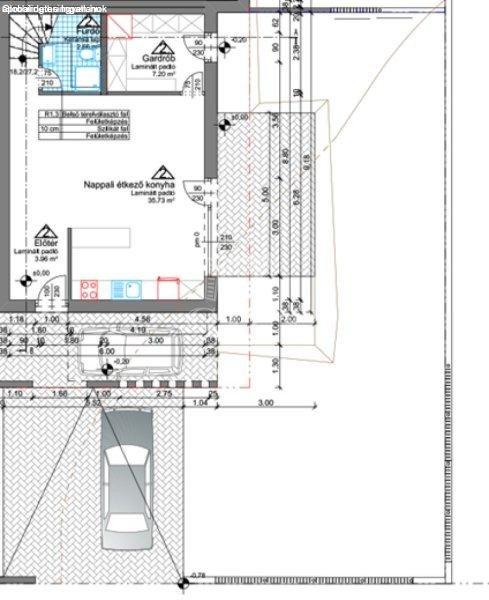 szintes ikerház saját, kb. 250 m˛-es telken helyezkedik el.Fedett kocsibeálló 2