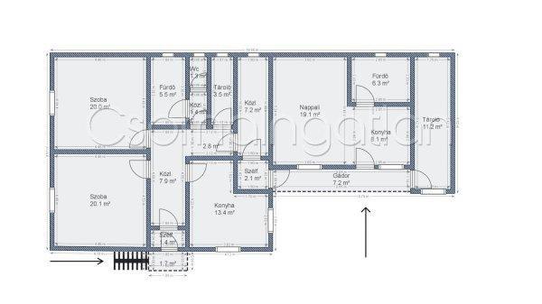 | Extrák: | 2 lakrész, padlófűtés, pince, fedett terasz, garázs, me |