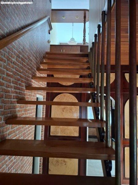 vezet fel az emeletre. A házat jellemzi a minőségi fa bútorok, beépített