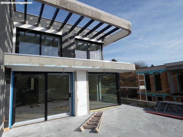egy minimál stílusú, ÖRÖKPANORÁMÁS, dupla garázsos, HÓSZIVATTYÚS, teraszos,
