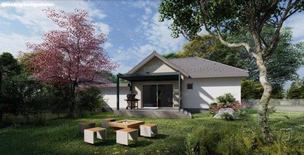 saroktelken, egy HÓSZIVATTYÚS, új építésű, teraszos, nettó 58 nm-es, + 16 nm-es