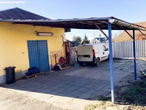 építésű tároló épület 26,8 m2, illetve egy féltetővel fedett acél