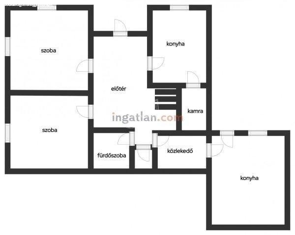 biztosít.Helyiségek:- Alsó szint: két szoba, két konyha, kamra, további
