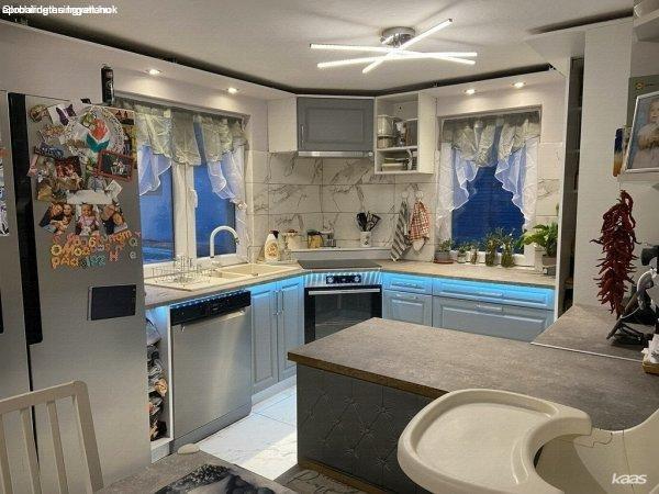 építésű,teljesen felújított állapotú, 86 m2-es, konyha/étkező + 4 szobás,