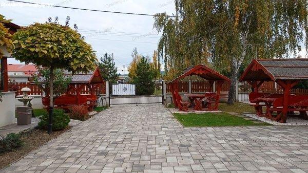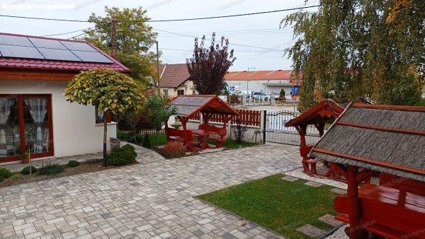 nádfedeles kiülő, 2 állásos fedett kocsibeálló, több autó számára alkalmas