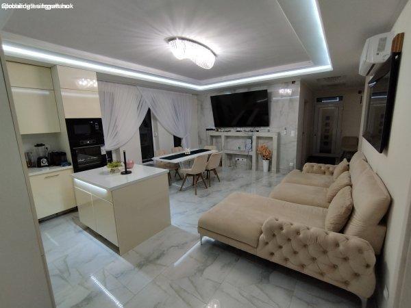 m2 lakóterületű, 3 szoba, amerikai honyhás nappalis, egy fürdőszobás családi