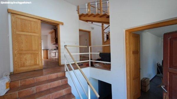 összesen 170 m2.Az alsó szinten egy tágas nappali, 2 db szoba, konyha,