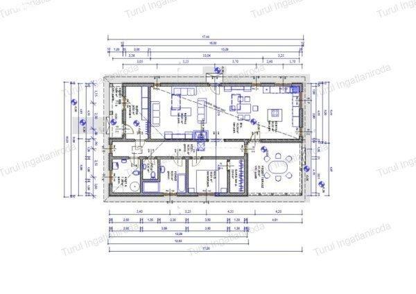 Nappali: 31 m˛- Előszoba: 9 m˛- Közlekedő: 16 m˛- Háztartási helyiség: 8 m˛- WC: