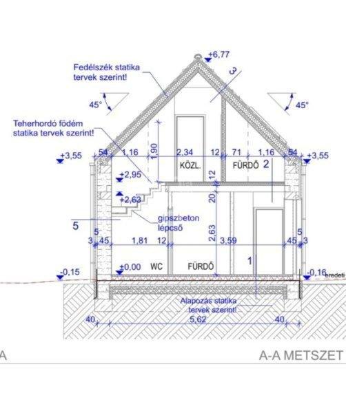 szintes, összesen 145 nm-es hasznos alapterületű (nettó 110 nm) családi házat