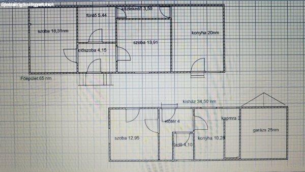 egy telken: a főépület 65 nm, a kisház pedig 35,50 nm alapterületű.A telek 1224
