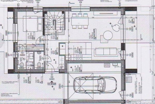 négyzetméteres garázsok választják el egymástól.A földszint elosztása:Nappali és