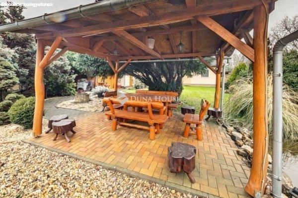 öntözőrendszert telepítettek és baráti összejövetelekre fedett kiülővel és kis