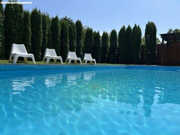 burkolatú udvari parkolók, valamint egy 9x4 méretes udvari úszómedence