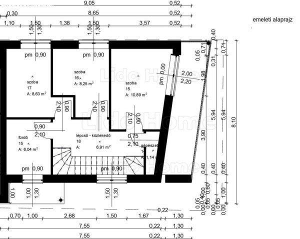 szoba / 11,0-8,5-8,5 m2 /,- fürdőszoba WC-vel +külön WC,Az ingatlan előre
