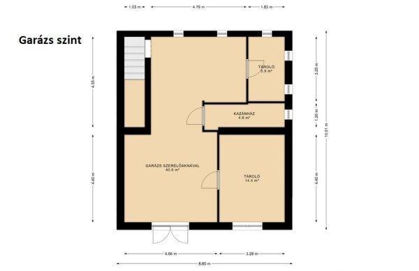 esztétikailag felújításra szorul.Szuterén /garázs/ szint: 70m2Ipari árammal és