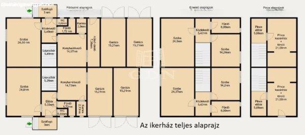fürdővel, 2 garázssal, valamint önálló ház és helyrajzi számmal rendelkezik.A