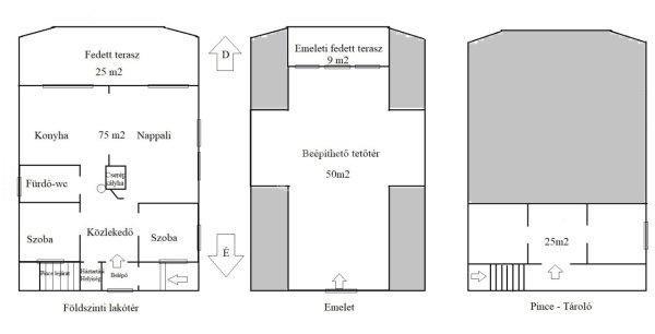egyben értendő, de az emeleti lakótér jelenleg egylégterű, szerkezetkész