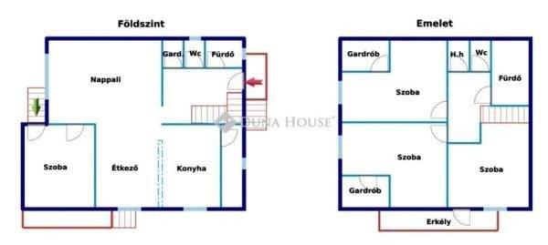( 18 -20 nm )- Mindkét szinten külön wc és fürdő- Központi fűtés gázkazánnal,
