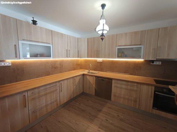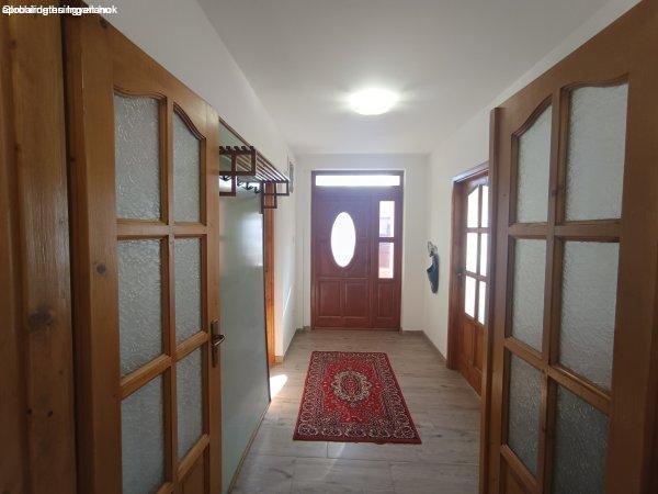 konyhás-étkezős-nappali, 3 hálószoba, kádas + zuhanyzós fürdő, külön WC, kamra,