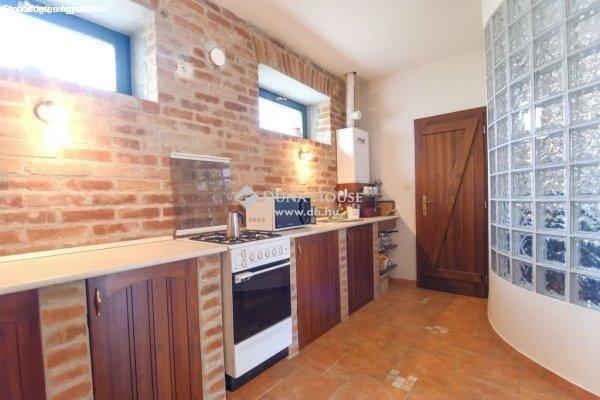 tégla borítású, hőszigetelt fa nyílászárókkal, beépített konyhával.A hagyományos