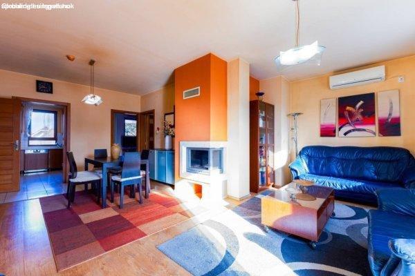 fatüzelésű látványkandalló a nappaliban- Teljesen gépesített konyha - Zárt