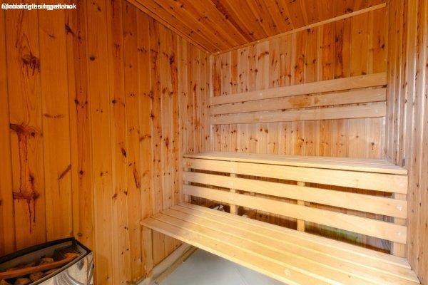 beálló (elektromos kapu előkészítéssel- Épített filagória- 4 személyes szauna-