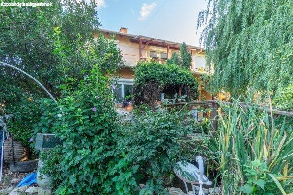 saját halastó híddal, gondozott növényállomány, szalonnasütő és hangulatos