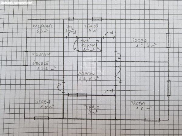 m2 alapterületű (+ 9 m2 terasz), 1990-es építésű, vasbetonfödémes tégla családi