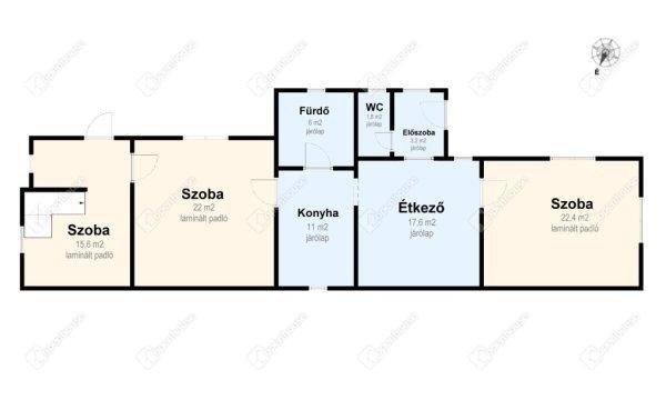 - a tetőszerkezet fa, rajta jó állapotú cseréptetővel - a szobákat lamináltpadló