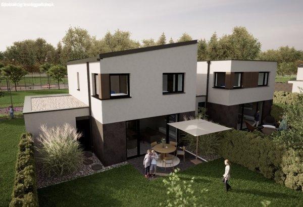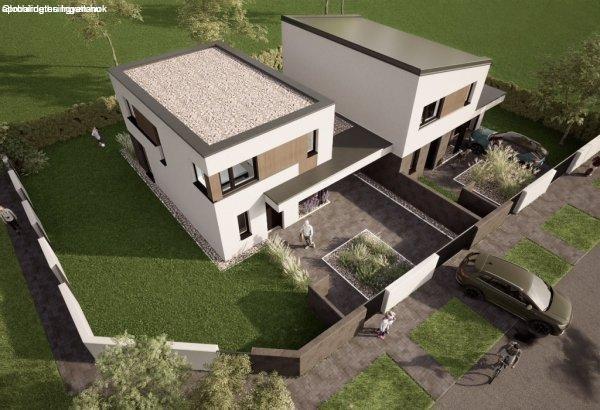 ikerházat, amelyhez 20 négyzetméteres saját garázs és privát kertrész is