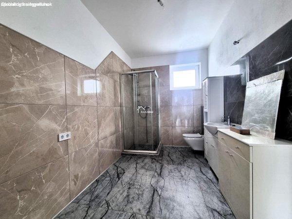 nappali helyiség, innen nyíló 19 m2-es terasz, 3 szoba, zuhanykabinos fürdőszoba