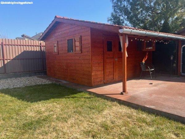 kertben beton alapon 16 nm faház nagy előterasszal található.Locsolás öntöző