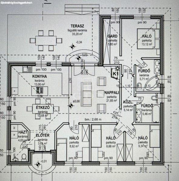 (plusz egy lakóegység építhető rá)- ház 135nm- 4 szoba, amerikai- konyhás